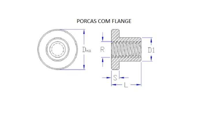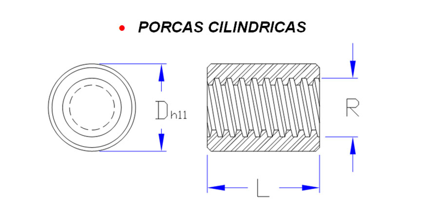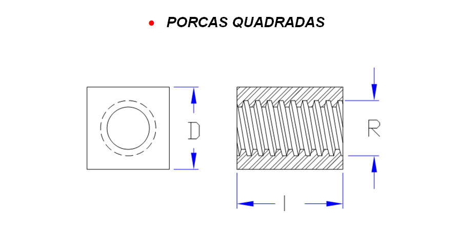 As porcas trapezoidal ou ACME podem ser fabricadas em diversos materiais, tais como: